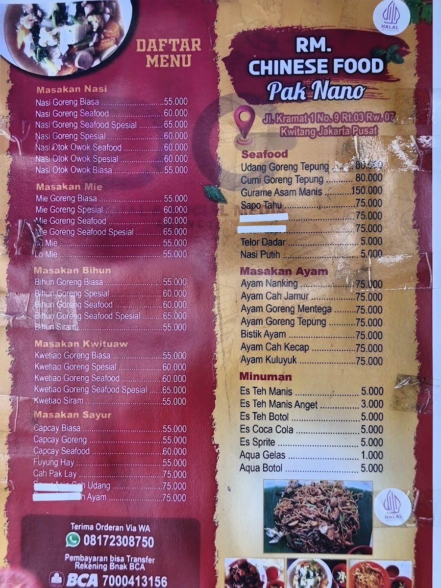 Introducing Chinese Food Pak Nano, a gem in the bustling heart of Jakarta, where traditional flavors meet exceptional value. Located at Jl. Kramat I No.9, this Chinese restaurant is gaining acclaim for its delicious halal offerings and generous portion sizes. Customers rave about the smoky, tangy flavors of the fried rice, perfect for sharing—a family-sized dish that satisfies even the heartiest appetites.